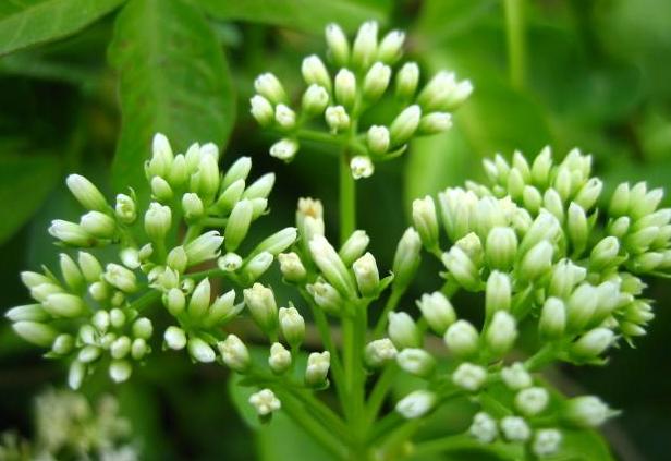 薇甘菊(Mikania micrantha Kunth in Humb.& al.):菊科、假澤蘭屬多年生草本植物或灌木狀攀援藤本,平滑至具多軟毛;莖圓柱狀,有時管狀,具棱;葉博,淡綠色,卵心形或戟形,漸尖,莖生葉大多箭形或戟形,具深凹刻,近全緣至粗波狀齒。圓錐花序頂生或側生,復花序聚傘狀分枝;頭狀花序小,花冠白色,喉部鐘狀,具長小齒,彎曲;瘦果黑色,表面分散有粒狀突起物;冠毛鮮時白色。