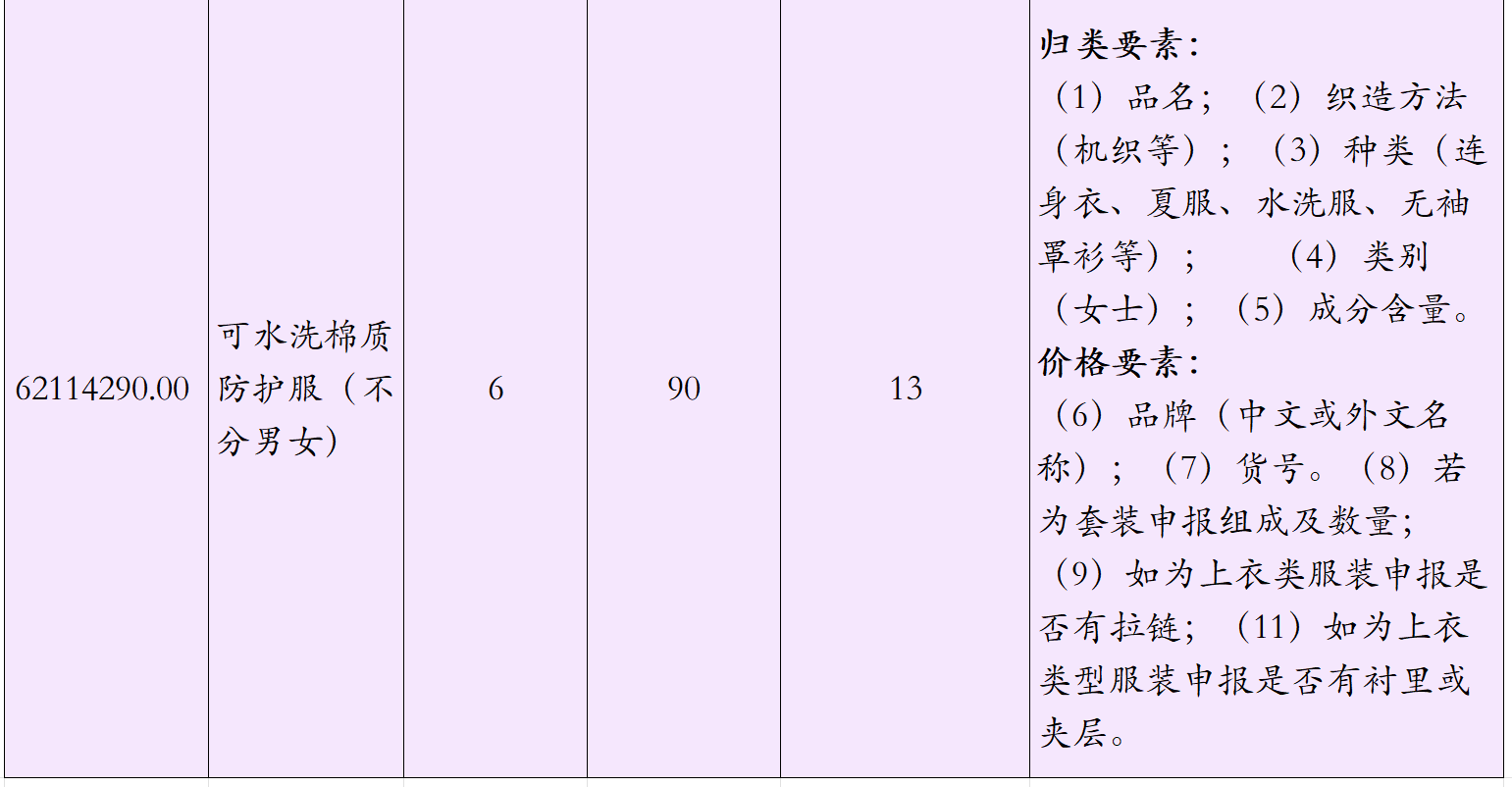 還有一些特殊的防護(hù)服,如醫(yī)院里放射性檢查工作人員穿著的X射線防護(hù)服,該防護(hù)服不含任何紡織加工工藝,分為內(nèi)層和包裹層兩部分組成,內(nèi)層為鉛粉和橡膠混合壓制成片,制成身體所需防護(hù)部位的樣式,內(nèi)層被聚氨酷片包裹,聚氨酷片構(gòu)成該商品塑料的基本特征這類(lèi)防護(hù)服可以保護(hù)人體的骨髓及造血系統(tǒng)、生殖器官、甲狀腺和內(nèi)臟等重要器官,減少X射線對(duì)人體的損害。常見(jiàn)的防護(hù)服可能涉及的歸類(lèi)及規(guī)范申報(bào)要素如下: