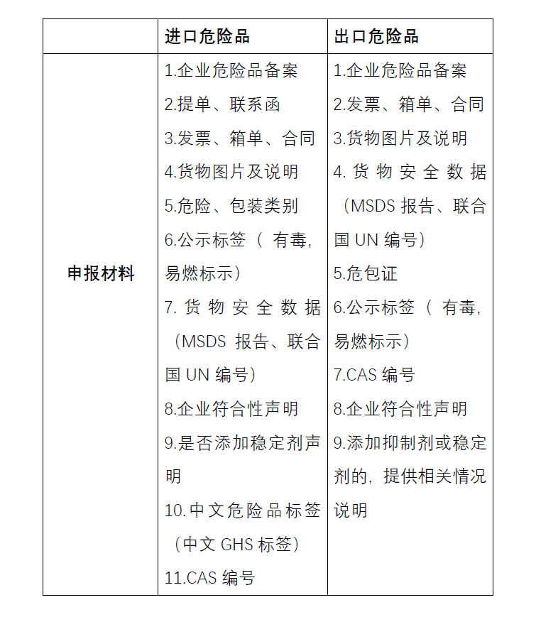 危險(xiǎn)品進(jìn)出口申報(bào)材料