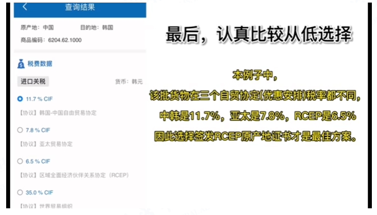 在各自貿(mào)協(xié)定中,關(guān)稅減讓是企業(yè)最直接的政策紅利。需要注意的是,同一原產(chǎn)國(guó)的同一貨物在不同的自貿(mào)協(xié)定下所適用的稅率和原產(chǎn)地規(guī)則可能不同。廣大企業(yè)可針對(duì)自身出口貨物,比較不同自貿(mào)協(xié)定下的協(xié)定稅率,選擇簽發(fā)原產(chǎn)地證書(shū)類別。