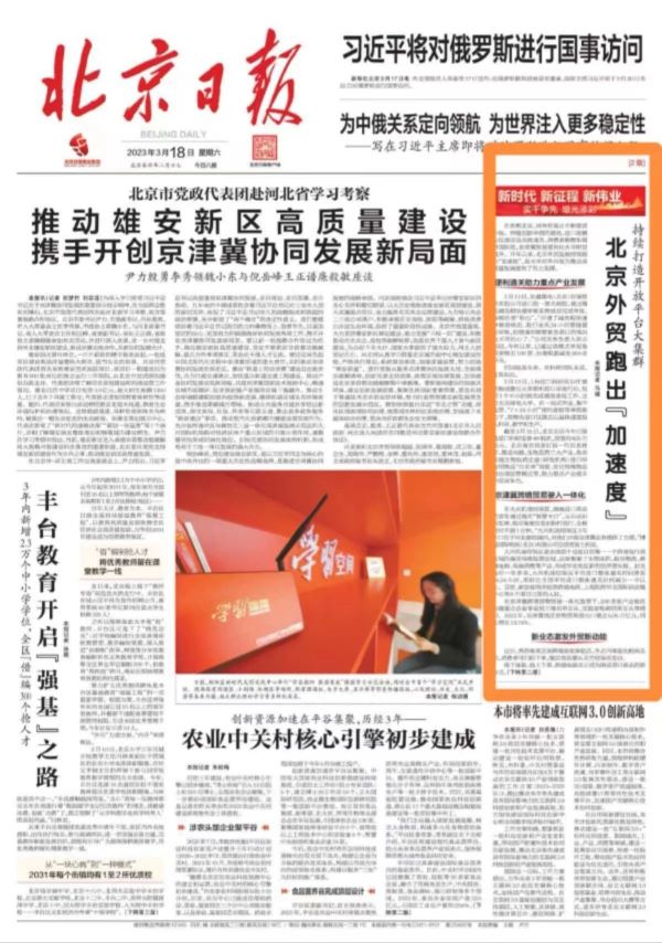 在首都北京,對(duì)外貿(mào)易正不斷提質(zhì)升級(jí)。伴隨創(chuàng)新舉措的落地,進(jìn)口高精尖儀器實(shí)現(xiàn)高效通關(guān),消費(fèi)者購(gòu)物車增添國(guó)際范,京津冀貿(mào)易便利化水平明顯提升。開年以來,北京外貿(mào)發(fā)展持續(xù)跑出“加速度”,高水平對(duì)外開放為推動(dòng)高質(zhì)量發(fā)展提供了有力支撐。