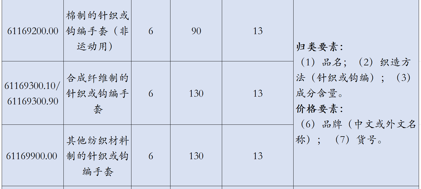 手套可以在勞動(dòng)過(guò)程中對(duì)手部進(jìn)行保護(hù),應(yīng)用非常廣泛,根據(jù)不同工作場(chǎng)景有不同保護(hù)和幫助工作的手套,比如防滑耐磨手套、絕緣手套、焊接手套、耐油耐腐蝕手套、無(wú)塵手套和消防手套等,其制作材料主要有皮革、棉線、PVC、橡膠等,可能涉及的歸類(lèi)及規(guī)范申報(bào)要素如下: