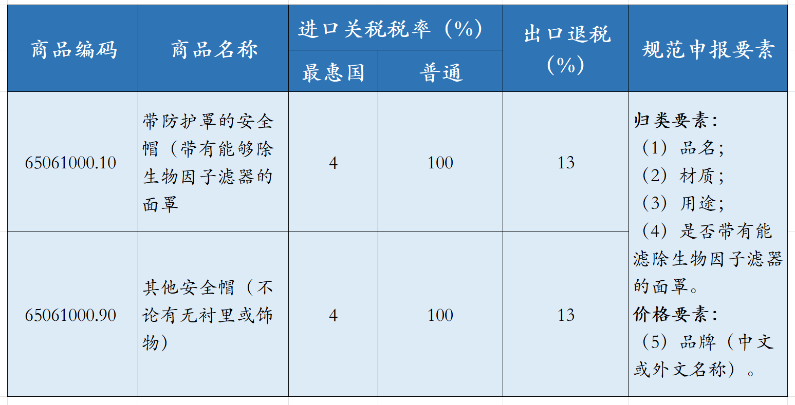 在2022版《中華人民共和國(guó)進(jìn)出口稅則》 (簡(jiǎn)稱《稅則》)列目結(jié)構(gòu)中,安全帽有具體列名歸入6506.1000項(xiàng)下,該商品編碼主要包括體育用帽、軍事或消防員用的頭盔、摩托車(chē)駕駛員、礦工或建筑工人用的頭盔,不論其是否裝有防護(hù)墊或(對(duì)于某些頭盔)裝有話筒或耳機(jī)。安全帽可能涉及的歸類(lèi)及規(guī)范申報(bào)如下: